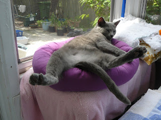 Blu Cat Man noticed that Evita was not feeling good last night. So Mombean took Evita to the v-e-t this morning. There, she was examined by our v-e-t. She is dehydrated. They ran bloodwork on Evita, too. Her kidneys are not working very well. She will be at the v-e-t-s overnight getting fluids. Puurs and puurayers for my Mombean and Daddy (Blu Cat Man) that they make the right choice and not let Evita suffer. Evita has lived a good long life. She is eleven years old almost twelve.